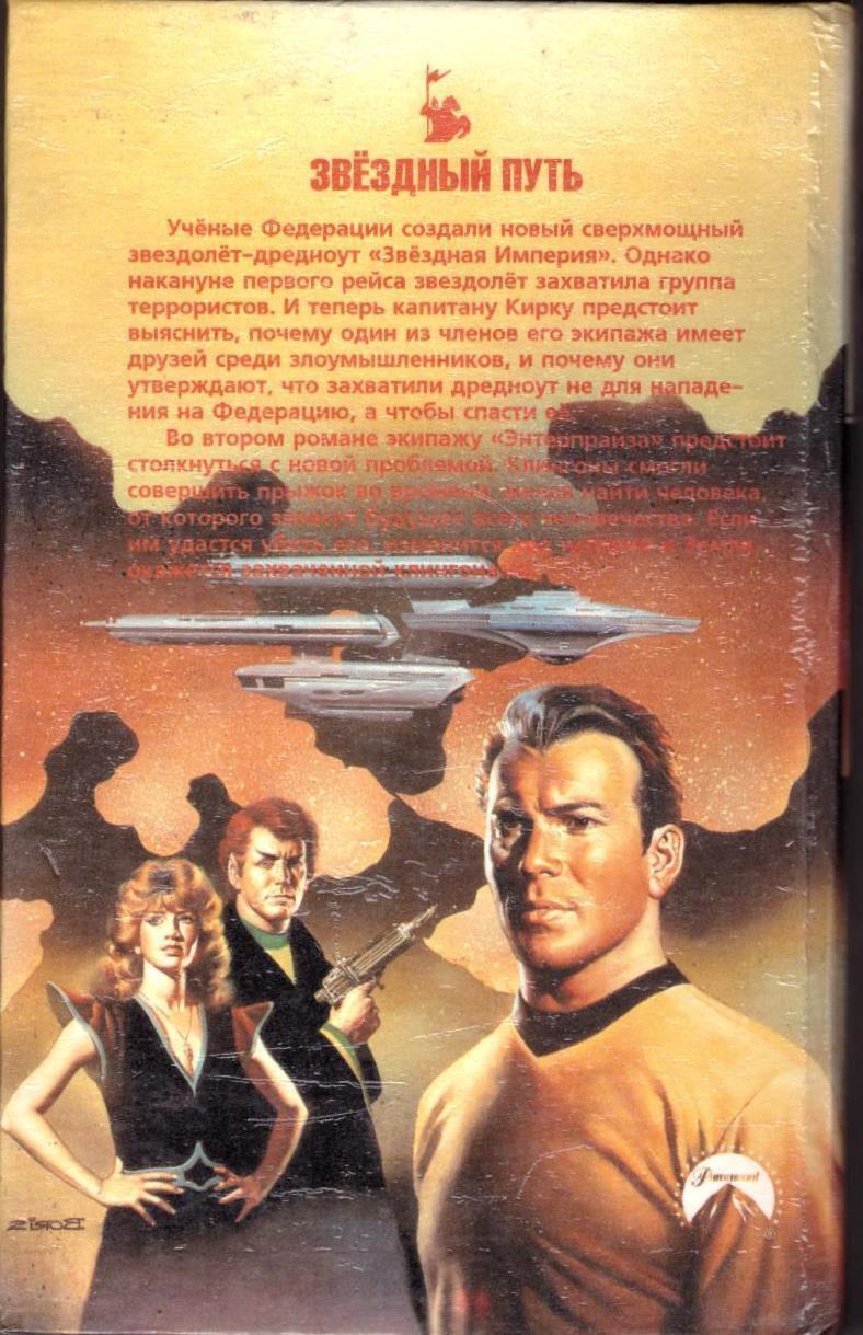 Ученые Федерации создали новый сверхмощный звездолет-дредноут "Звездная Империя", способный отразить нападение десятков вражеских кораблей или покорить всю Галактику. Однако накануне первого рейса звездолет захватила группа террористов. И теперь капитану Кирку предстоит выяснить, почему один из членов его экипажа имеет друзей среди злоумышленников, и почему они утверждают, что захватили дредноут не для нападения на Федерацию, а чтобы спасти ее.Во втором романе экипажу "Энтерпрайза" предстоит столкнуться с новой проблемой. Клингоны смогли совершить прыжок во времени, желая найти человека, от которого зависит будущее всего человечества. Если им удастся убить его, изменится ход истории и Земля окажется захваченной клингонами.