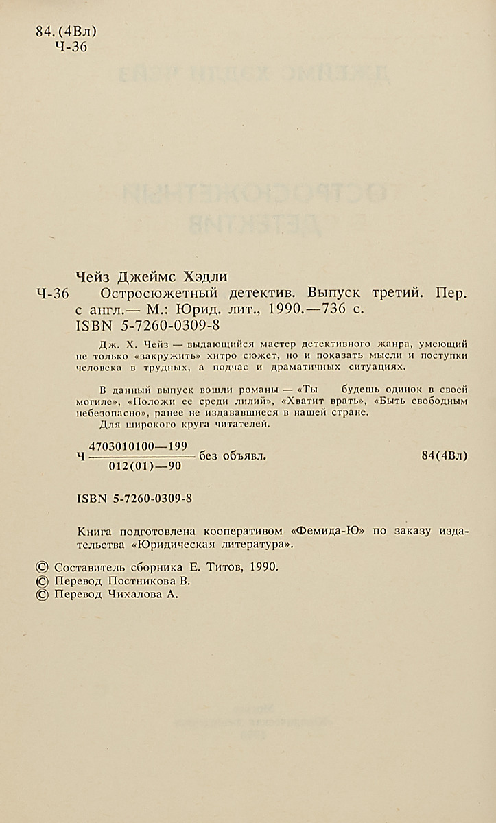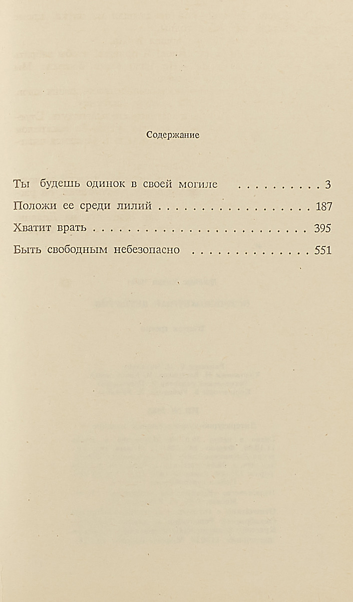 Дж.X.Чейз - выдающийся мастер детективного жанра, умеющий не только "закрутить" хитро сюжет, но и показать мысли и поступки человека в трудных, а подчас и драматичных ситуациях.В данный выпуск вошли романы - "Ты будешь одинок в своей могиле", "Положи ее среди лилий", "Хватит врать", "Быть свободным небезопасно", ранее не издававшиеся в нашей стране.