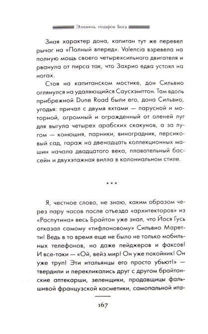 «Роман с легендами, без ложной скромности, для взрослых читателей» — так сам автор обозначил жанр этого, зачастую эротического, повествования о любви и интригах вокруг создания первой русской радиостанции в Нью-Йорке.Книга Эдуарда Тополя "Элианна, подарок Бога" переносит читателя в Америку 80-90-х годов. Эмигранты пытаются обустроить свою жизнь, открывается первая русская радиостанция, а новые связи обещают страстную любовь.
