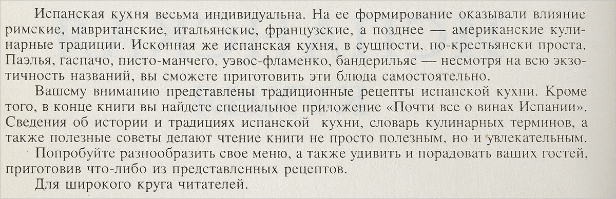 Знатоки испанской кухни утверждают, что самое типичное для нее "Мешать все вместе". Подтверждением этому служит отрывок из книги Винценто Бласко Ибанес: