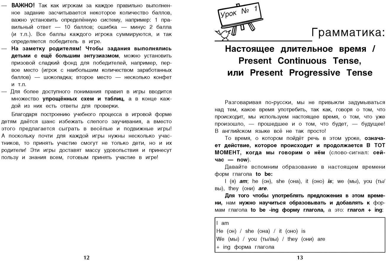 "Изучаем времена английского языка, играя!" представляет собой игровой учебник для детей младшего и среднего школьного возраста. Благодаря этой книге детям дается прекрасная возможность в игровой форме изучать временные формы английского языка: осваивать правила при помощи грамматических конкурсов; практиковать разговорную речь, принимая участие в веселых лексических викторинах; тренировать произношение при помощи шуточных фонетических розыгрышей.
