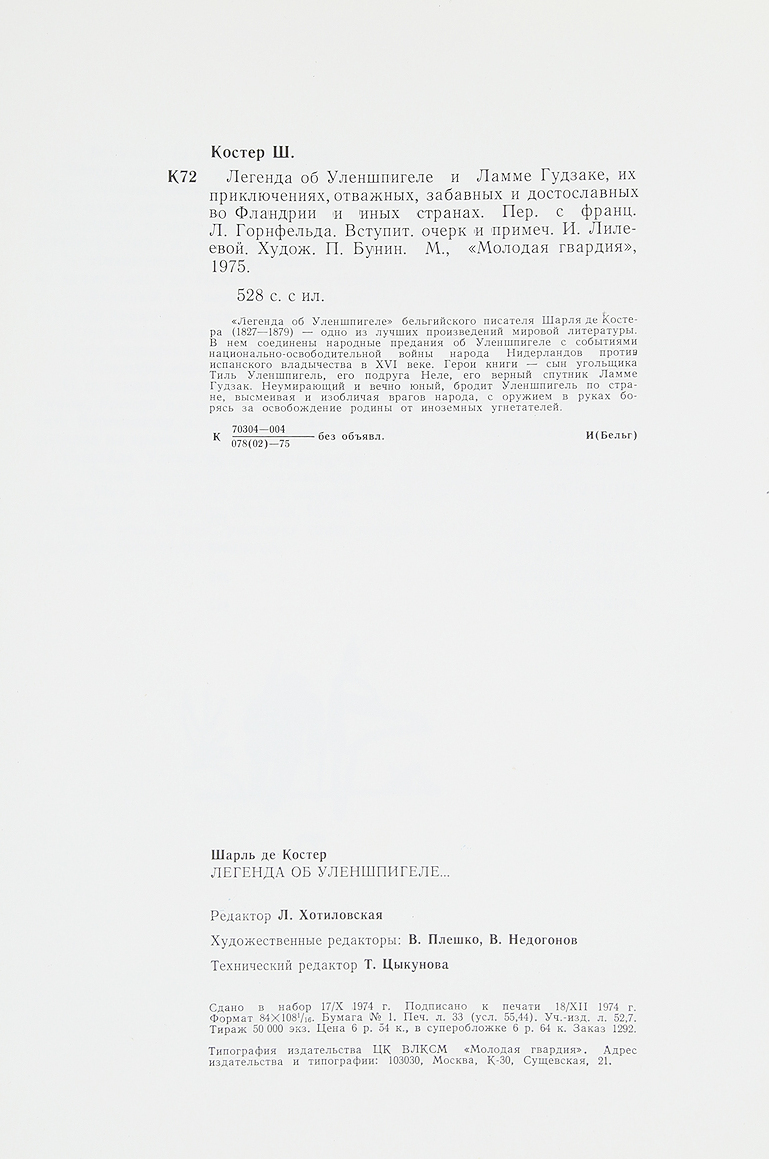 "Легенда об Уленшпигеле" бельгийского писателя Шарля де Костера - одно из лучших произведений мировой литературы.