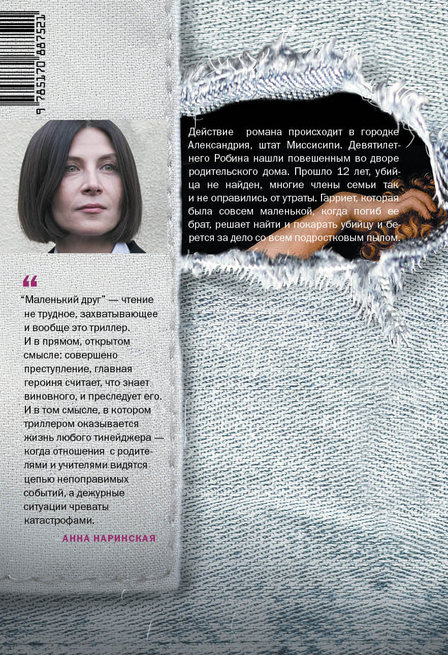 ""Маленький друг" - чтение не трудное, захватывающее и вообще это триллер. И в прямом, открытом смысле: совершено преступление, главная героиня считает, что знает виновного, и преследует его. И в том смысле, в котором триллером оказывается жизнь любого тинейджера - когда отношения с родителями и учителями видятся цепью непоправимых событий, а дежурные ситуации чреваты катастрофами".