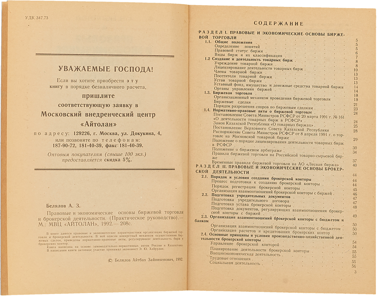 В книге даются правовые и экономические характеристики организации биржевой торговли и брокерской деятельности. В ней описан конкретный механизм осуществления биржевых сделок, приведены нормативно-правовые акты, регулирующие деятельность бирж и брокерских контор. Книга написана на основе нормативно-правовых актов России и Казахстана.