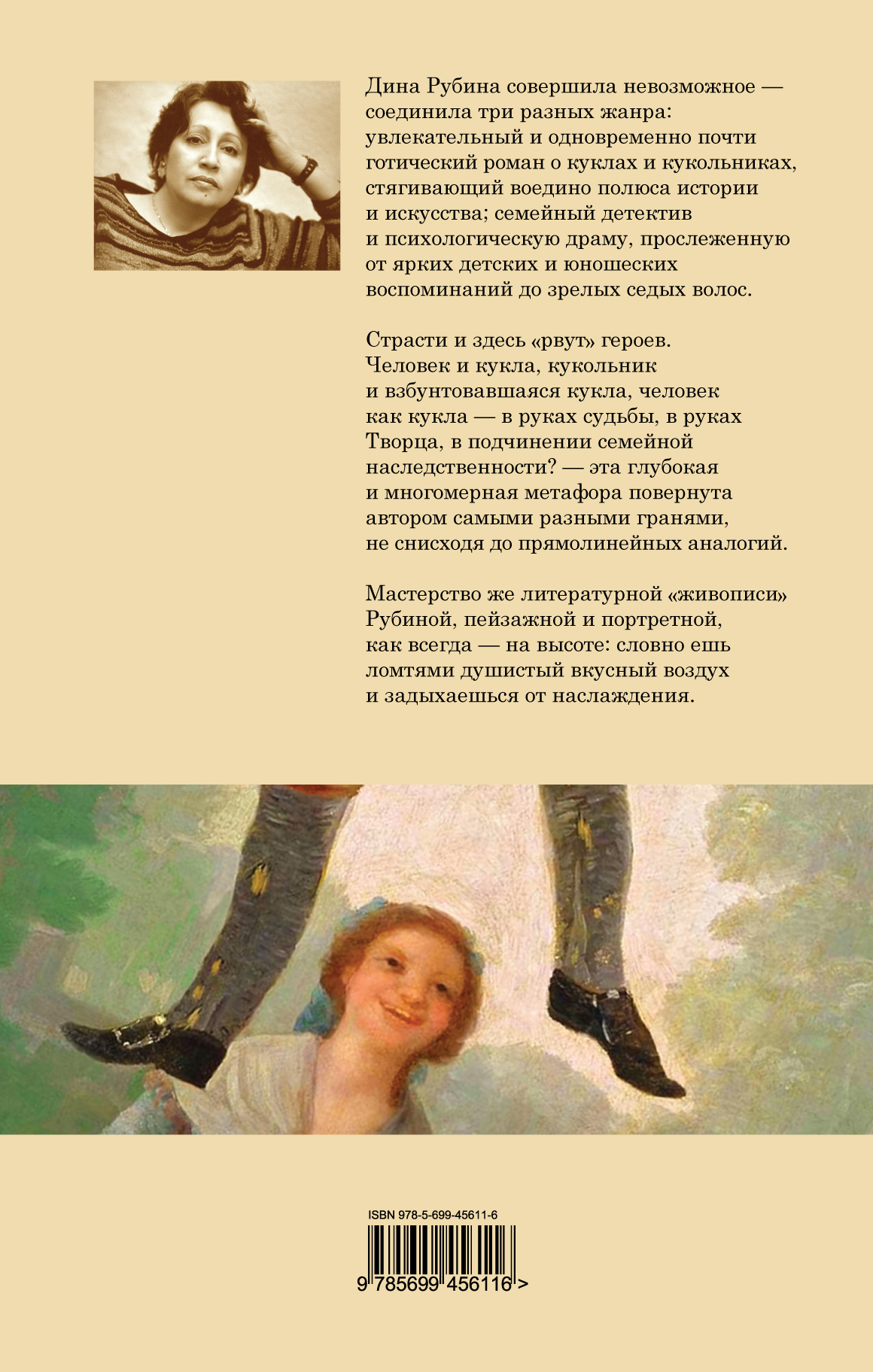Дина Рубина совершила невозможное - соединила три разных жанра: увлекательный и одновременно почти готический роман о куклах и кукольниках, стягивающий воедино полюса истории и искусства; семейный детектив и психологическую драму, прослеженную от ярких детских и юношеских воспоминаний до зрелых седых волос.