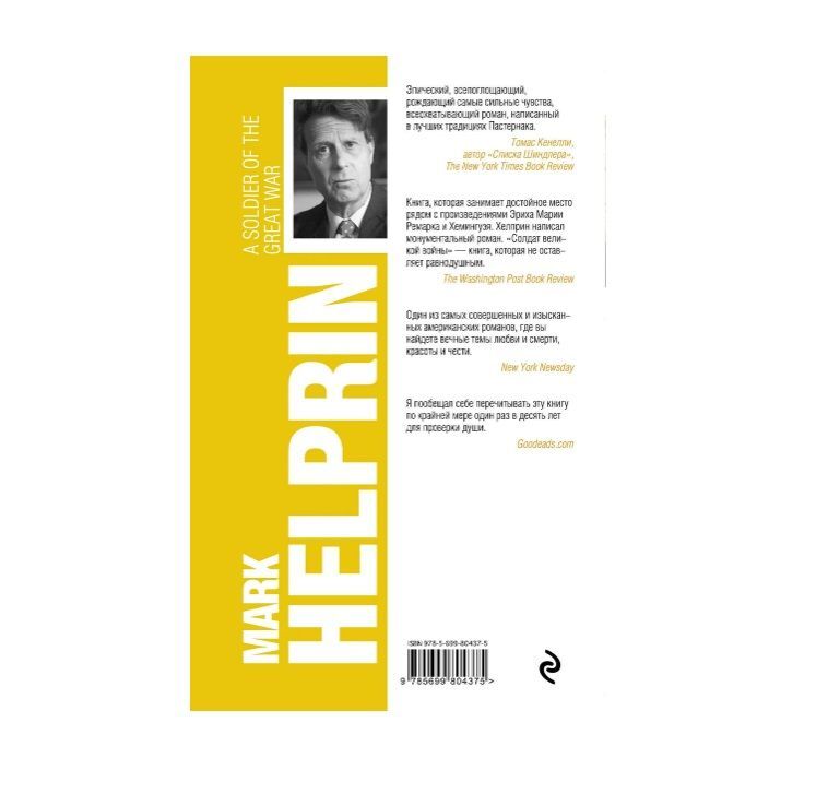 Впервые на русском языке — роман от автора «Зимней сказки» и «Рукописи, найденной в чемодане». «Солдата великой войны» сравнивают с книгами Ремарка, Хемингуэя, Пастернака. Казалось бы, о войне сказано очень много и очень многими, но каждая судьба, перекореженная колесом истории, интересна по-своему. .Герой романа Хелприна, Алессандро Джулиани, — профессор эстетики. Спустя полвека после Первой мировой войны он проходит некогда пройденный путь по дорогам, которые тогда, в 1914-м, были освещены таким же ярким солнцем, но все было совсем иначе, потому что шла война и солдаты, сбивавшие в кровь ноги на этих дорогах, могли в любой момент умереть. .«Я пообещал себе перечитывать эту книгу по крайней мере один раз в десять лет для проверки души», — пишет читатель.