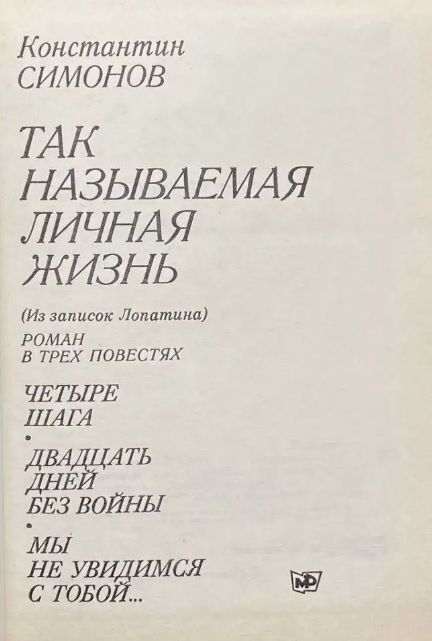 - Константин Симонов. Так называемая личная жизнь (роман);