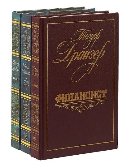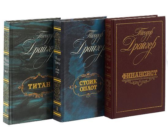 В комплект вошли эпопея Т.Драйзера «Трилогия желания» (романы «Финансист», «Титан», «Стоик») и роман «Оплот».Главный герой «Трилогии желания» - Фрэнк Каупервуд. В основу положена история жизни миллионера Ч.Йеркса. Наиболее распространенный перевод на русский язык М.Волосова.Драйзер показывает, как окружавшая Каупервуда буржуазная и коммерческая среда уже с детства формирует в нем психологию дельца и приобретателя, для которого все средства хороши, если они помогают достигнуть власти и богатства. «Трилогия желания» - значительное произведение американской и европейской литературы XX века. Драйзер рисует быт и нравы финансовой среды, подход крупной буржуазии к обществу и ее политическую беспринципность.В «Трилогии желания» Драйзер обнажает хищническую природу Каупервуда, но в то же время любуется этим спекулянтом: Драйзера привлекает этот смелый финансовый гигант.В центре романа «Оплот» три поколения религиозной квакерской семьи. Религия не только не уберегает главного героя и его семью от соблазнов нового времени, но и противопоставляет ему собственных детей, толкает их на путь лжи и преступлений.«Оплот», так же как и остальные произведения Драйзера, основан на фактах реальной американской действительности, отражает глубокое знание писателем жизни и нравов всех слоев американского общества.