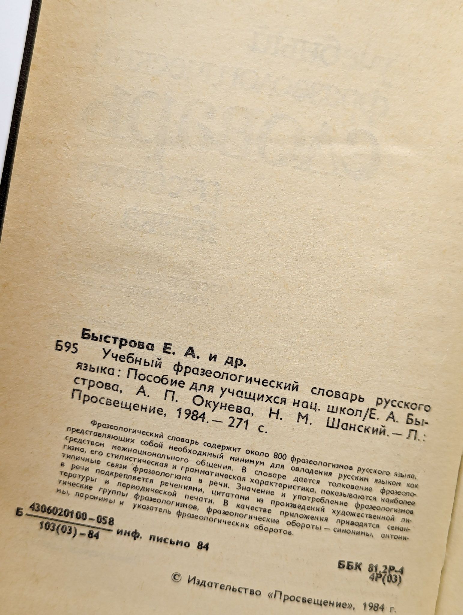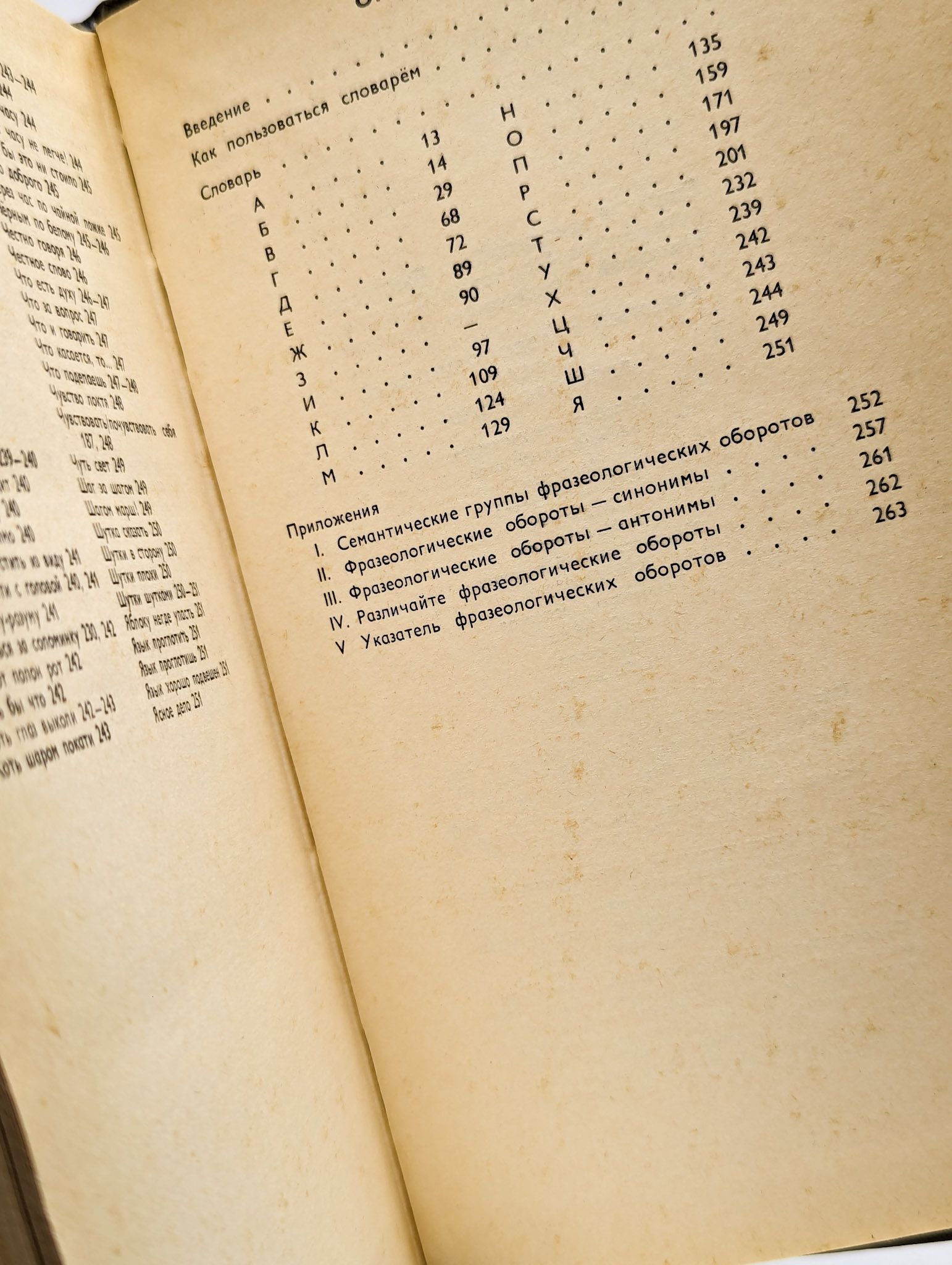 Фразеологический словарь содержит около 800 фразеологизмов русского языка, представляющих собой необходимый минимум для овладения русским языком как средством межнационального общения. В словаре дается толкование фразеологизма, его стилистическая и грамматическая характеристика, показываются наиболее типичные связи фразеологизма в речи. Значение и употребление фразеологизмов в речи подкрепляется речениями, цитатами из произведений художественной литературы и периодической печати. В качестве приложения приводятся семантические группы фразеологизмов, фразеологические обороты — синонимы, антонимы, паронимы и указатель фразеологических оборотов.