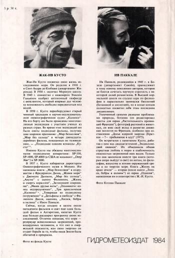 Книга всемирно известного исследователя Мирового океана Жака-Ива Кусто и молодого биолога Ива Паккале рассказывает об очередной экспедиции "Калипсо", которая проходила у берегов Патагонии и на островах архипелага Огненная Земля. Основной целью экспедиции было изучение южных гладких китов, приплывающих на сезон размножения в заливы Сан-Хосе и Гольфо-Нуэво. Авторы сообщают много новых интересных подробностей о нраве, играх и брачных церемониях этих морских исполинов. Кроме того, авторы повествуют о встречах с другими животными этого уголка света - гуанако, нанду, броненосцами, разнообразными морскими птицами. Перед экспедицией стояла и другая задача - отыскать в лабиринте островов архипелага Огненная Земля последних индейцев вымирающего племени каушкаров. Члены команды "Калипсо" встретились с ними и убедились, что этот народ находится на грани полного исчезновения. В книге множество цветных и черно-белых иллюстраций в тексте и на отдельных листах. Перевод с французского М.Г.Таракановой.